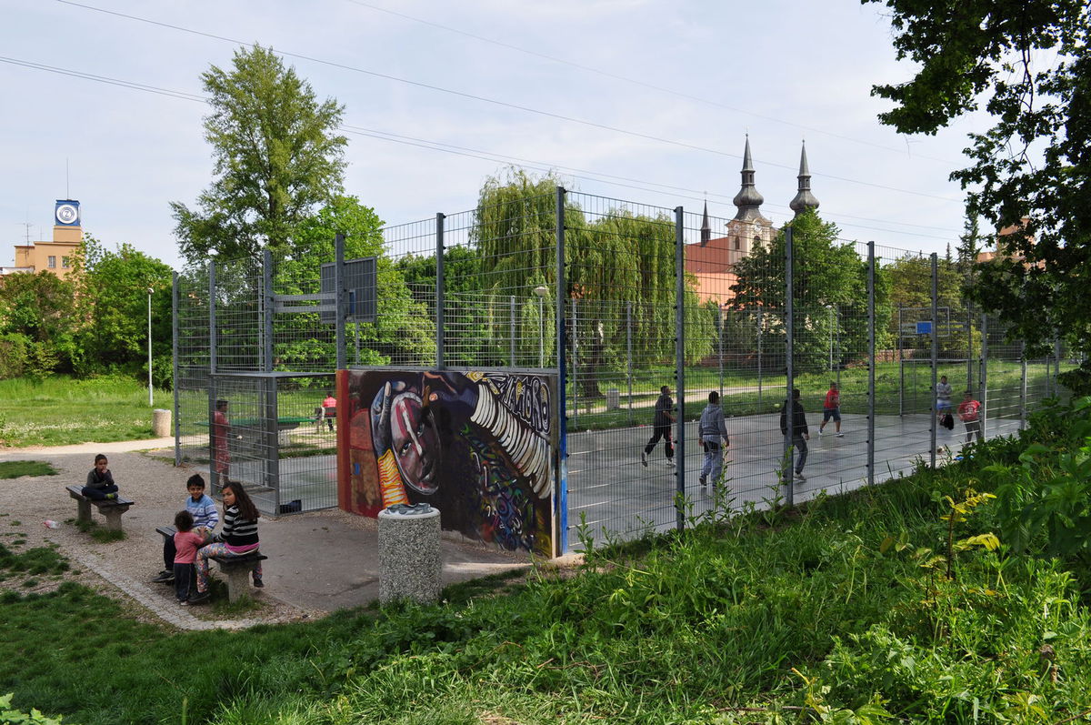 Caged sports CAVEA is bounded by 4 m high fence with silencers for noise. Sports is variable both in terms of size and in terms of equipment. Standard equipment are two goals 2,5 x 2,5 m, two basketball baskets and clamping elements for placement net for tennis / netball and volleyball / badminton.