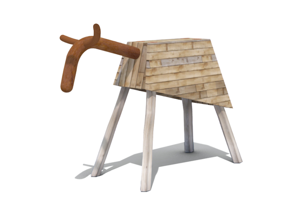 1x ocelová hlava, 1x dřevěná konstrukce těla a nohou