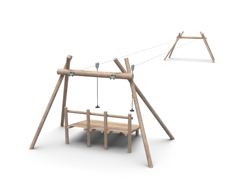 dvě lanové dráhy se sedátkem a nástupní rampou