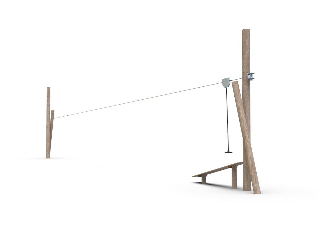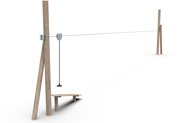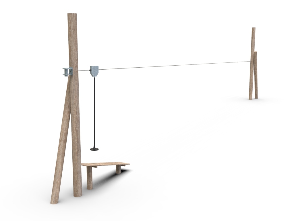 4x akátová stojka, nástupní plošina, lanovka 20 m
