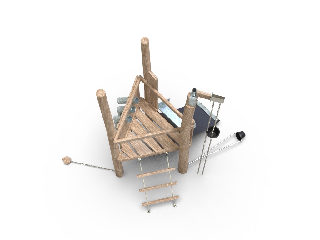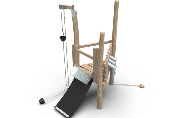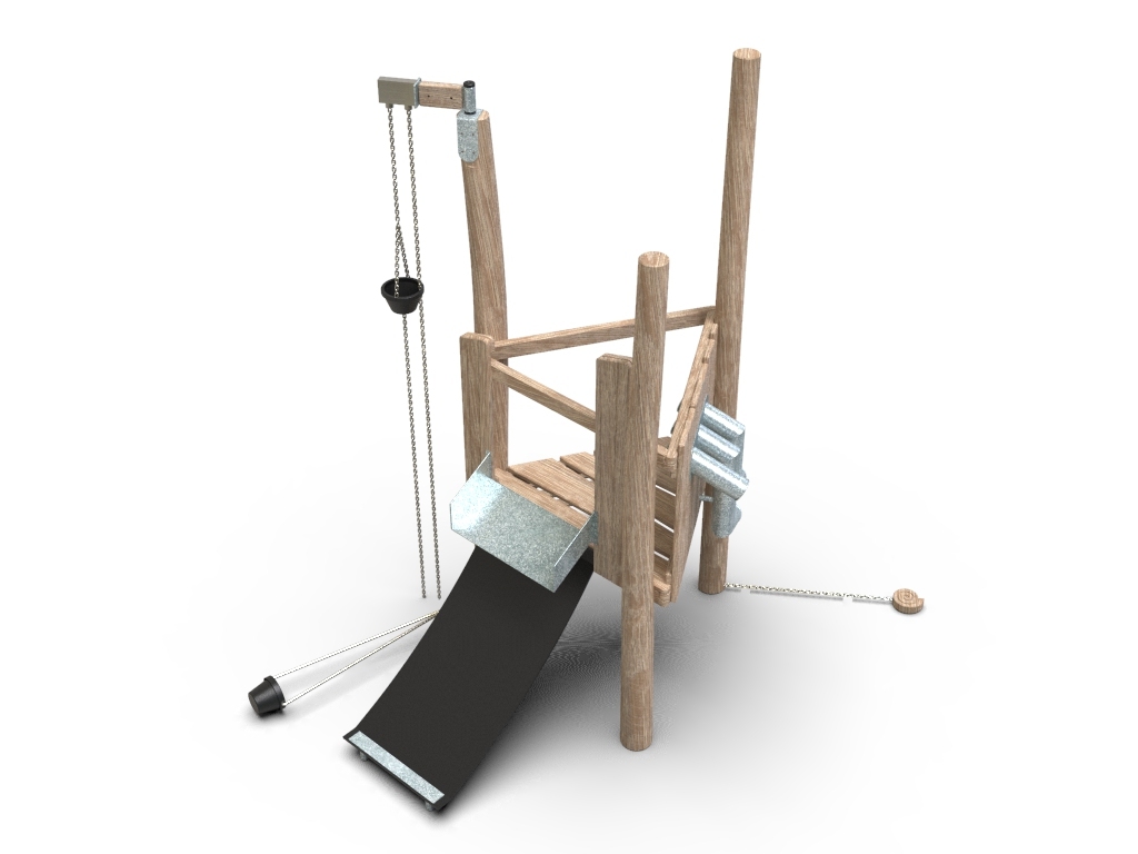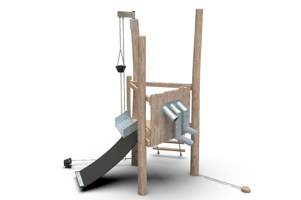 3x akátová stojina, 1x gumový pás, 1x kyblík na řetězu, 1x kyblík na kladce, 1x dřevěný šnek, 1x kovové prosýpací roury, 1x kovové koryto
