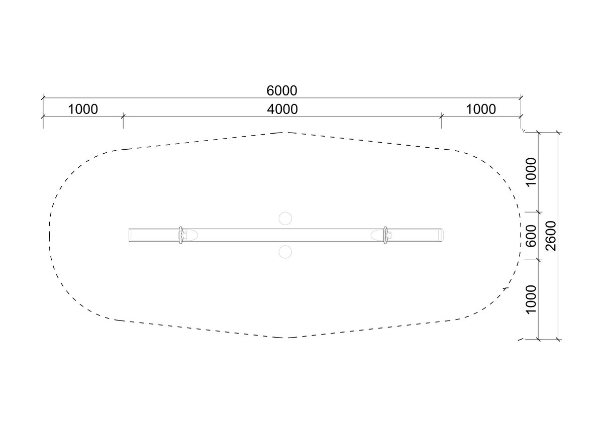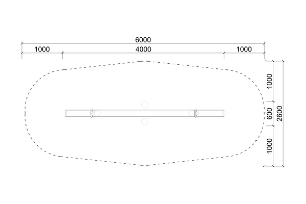 1x akátové ráhno houpačky, 2x akátová stojka, 2x gumový doraz